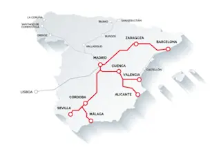 Madrid - Zaragoza - Barcelona: The first lryo route was launched in November 2022, with service between Madrid, Barcelona and Zaragoza. The trip lasts 2h30, departing from Madrid Atocha stations and ending in Barcelona Sants Station. These trains operate 16 times a day (each way), making them a comfortable and convenient way to travel between these cities.